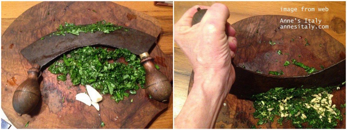 傳統會使用一種雙柄的半月刀 Mezzaluna ,將羅勒、松子和大蒜在帖板上切碎,或分批放入研缽搗碎,加入橄欖油混合均勻,最後拌入起司,淋上一點檸檬汁,以鹽與黑胡椒調味;若使用果汁機或食物調理機,則將所有的材料放入打碎攪拌至質地細緻即可。